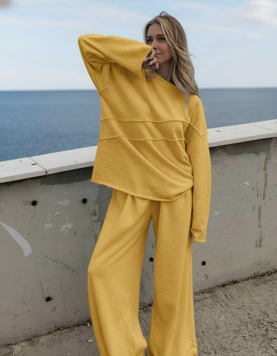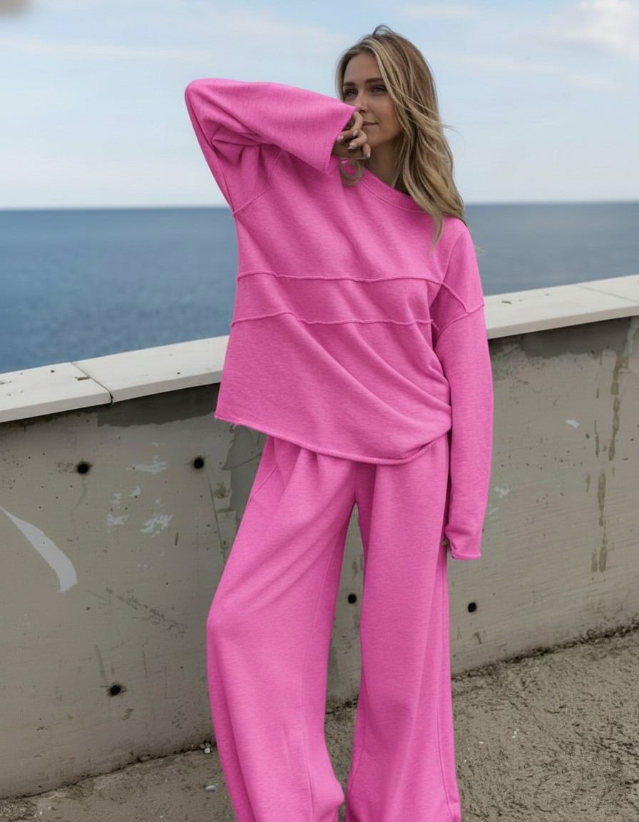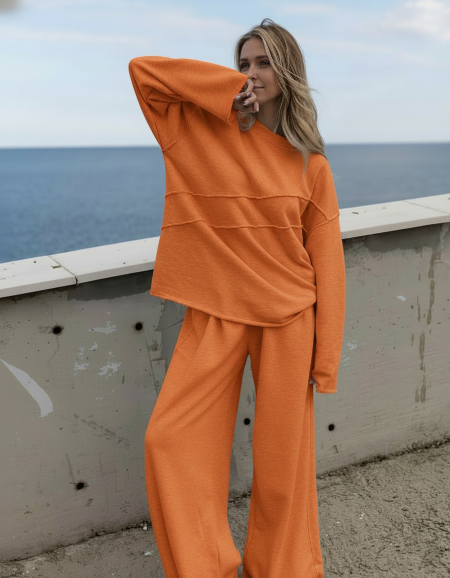 Experience the perfect blend of comfort and style with our comfortable fit two-piece set. The set consists of a crew neck top and matching trousers, both made from soft, breathable material to keep you looking stylish and relaxed.