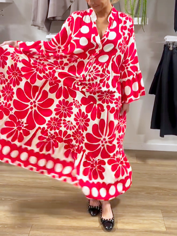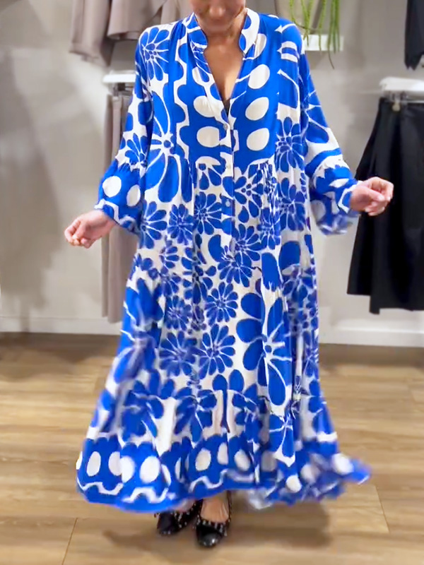 Introducing our V-Neck Button Printed Dress, designed for the modern woman who values sophistication and style. This dress features a stunning print and elegant maxi length, making it perfect for any occasion.