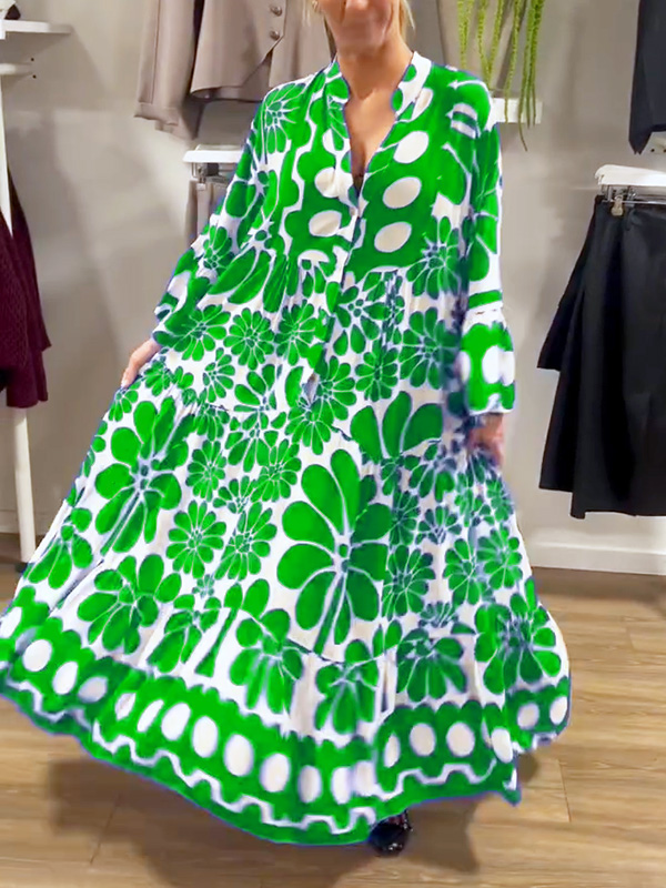Timeless Elegance: V-Neck Button Printed Dress